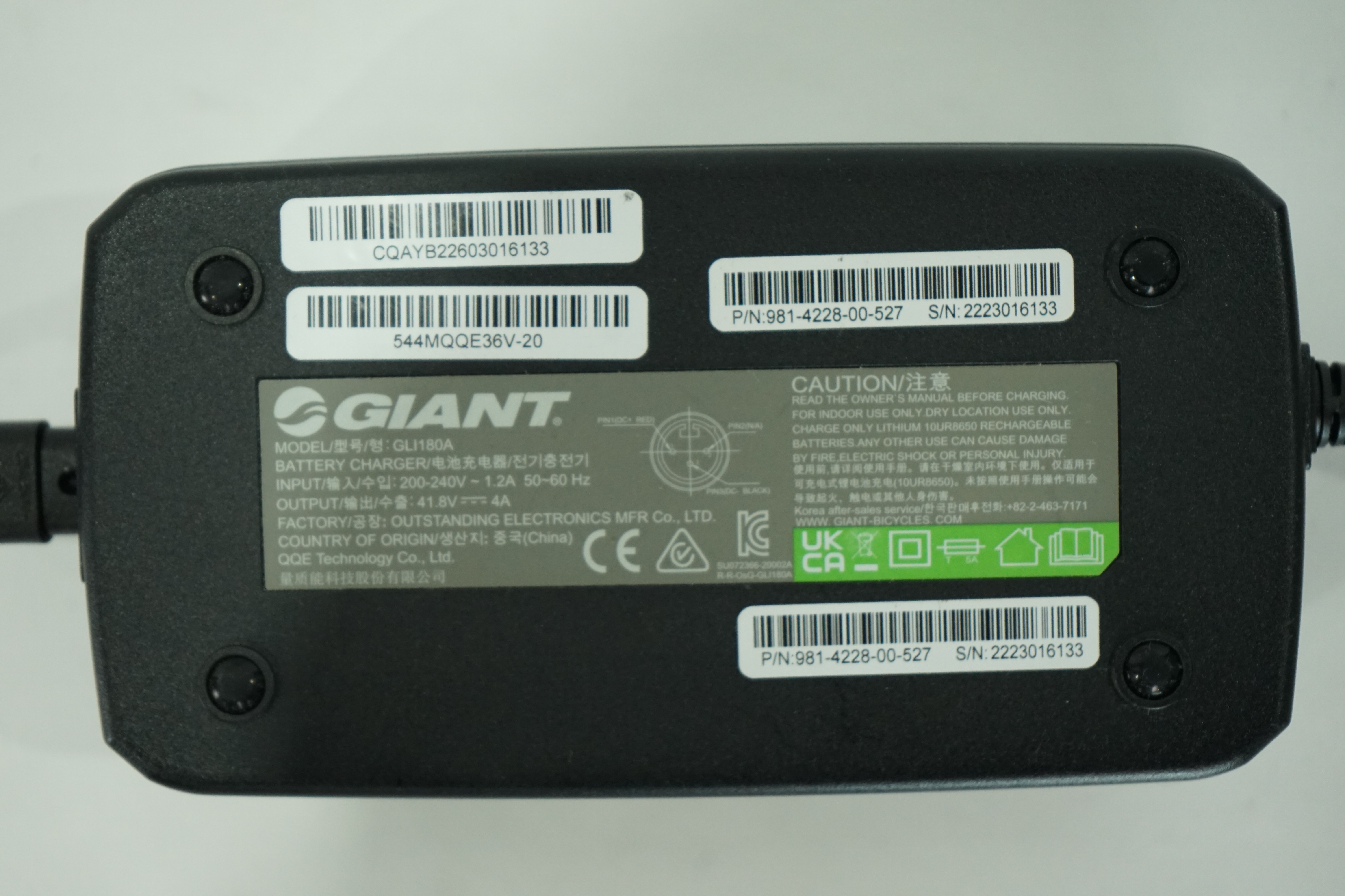 Giant Fast Charger E Bike Ladegerät 4A 3 Pin Akkus - GLI180A - gebraucht